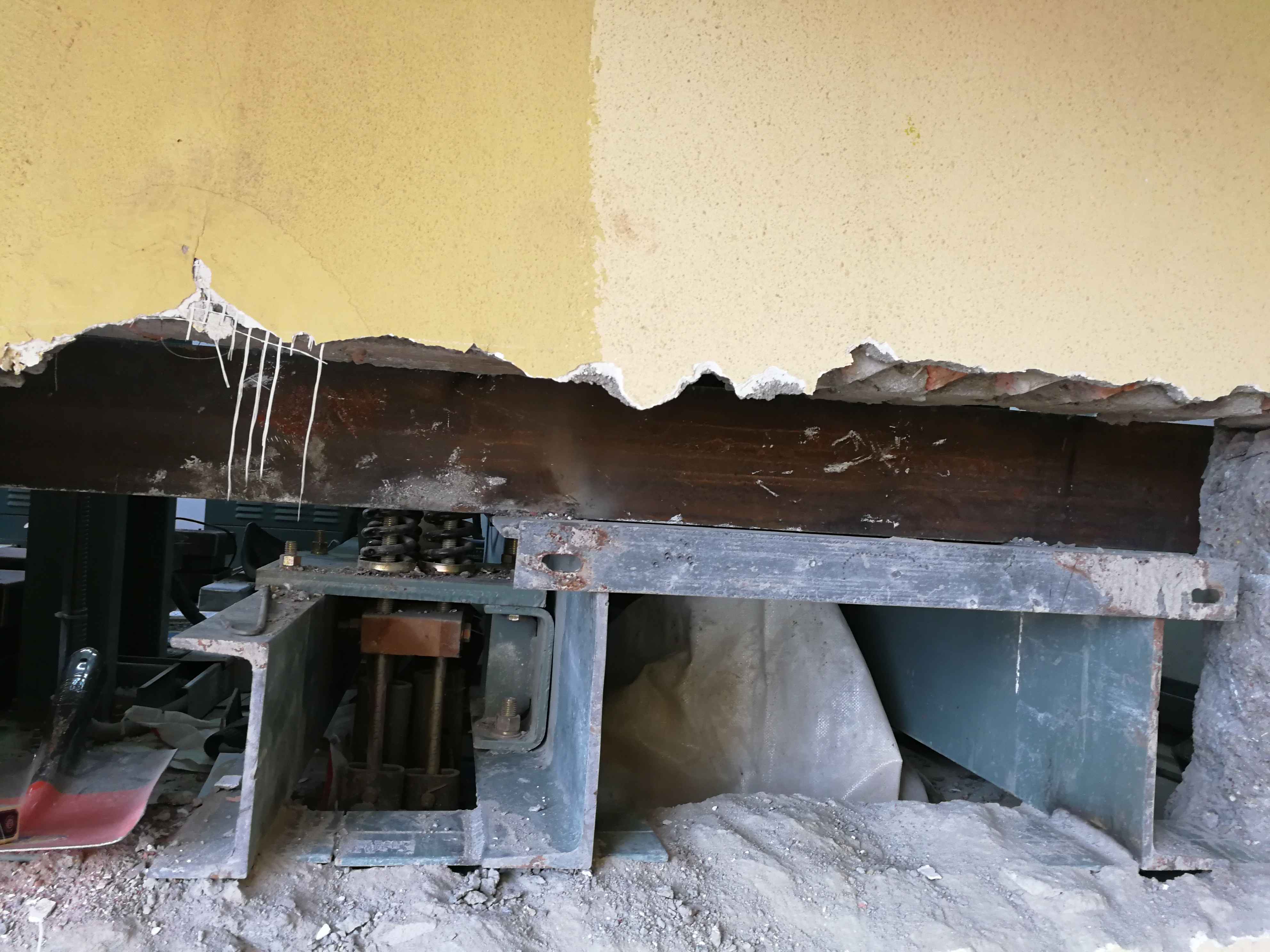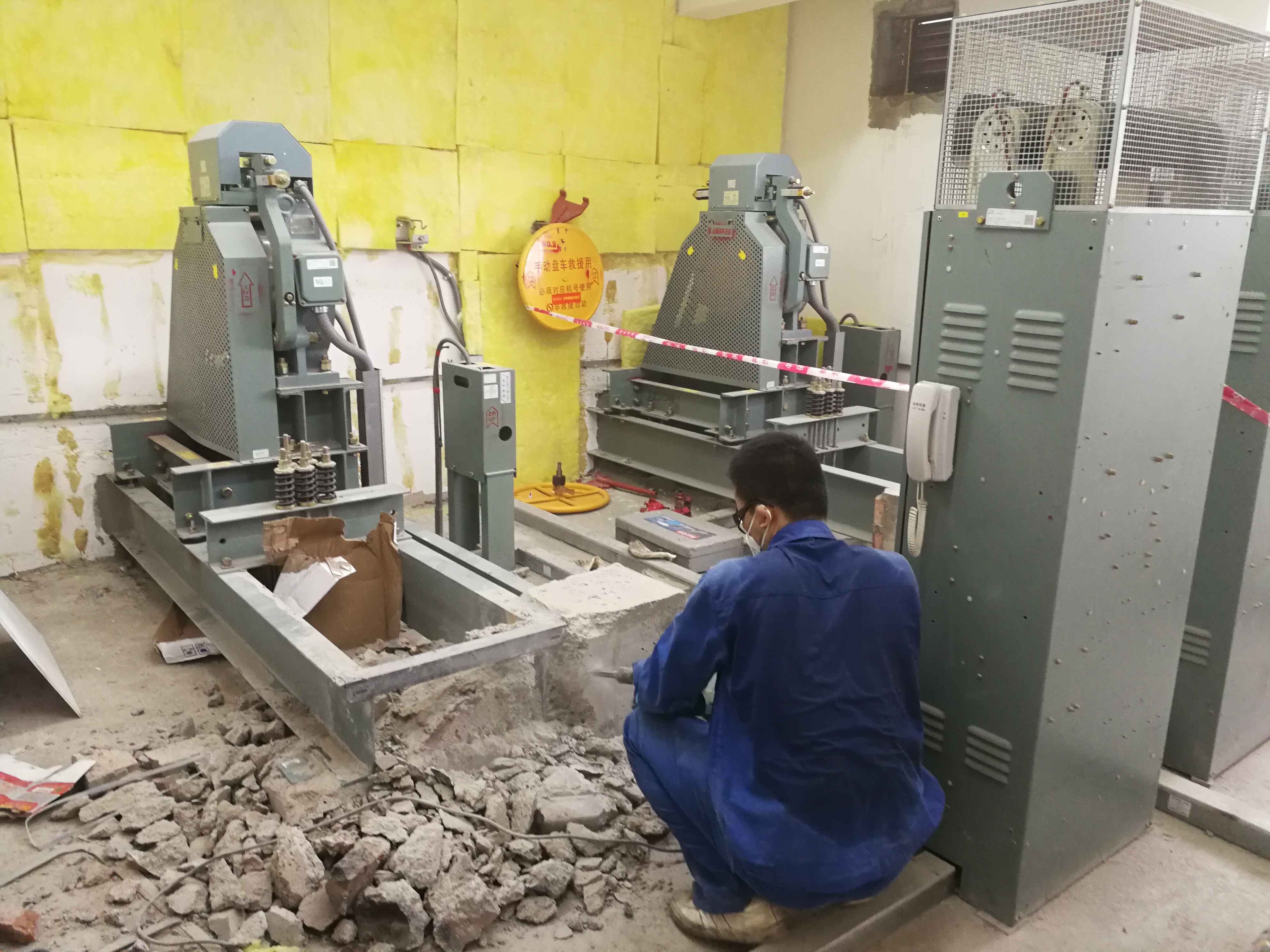 3、在電梯主機(jī)原有底梁與墻體諒解部分,采用等離子切割方式,使其不與墻體連接,并將原有梁墩拆除,目的是讓電梯主機(jī)系統(tǒng)徹底不與墻體和地板直接接觸。?