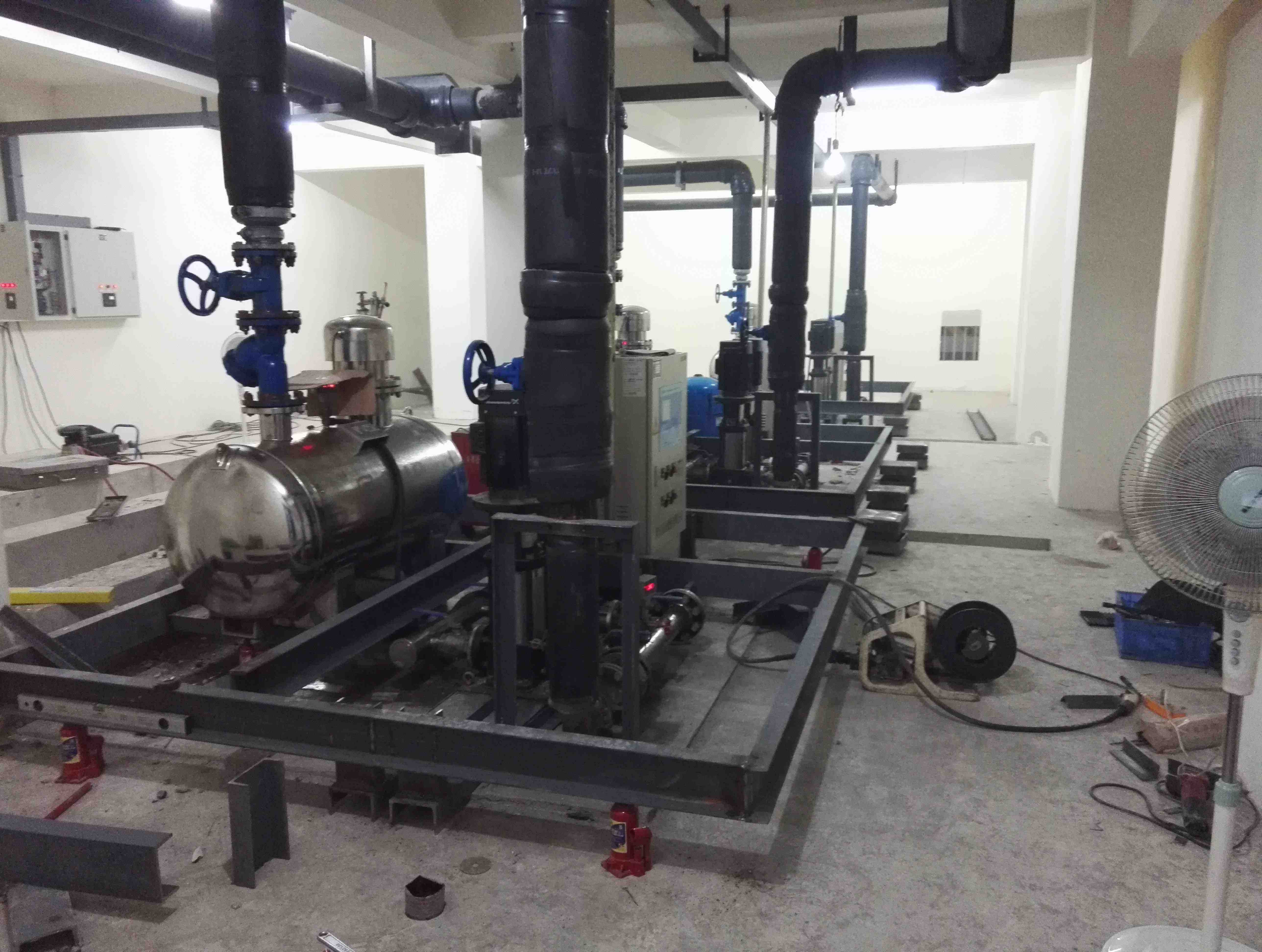 成都金欣苑小區(qū)水泵房總共有三套水泵機(jī)組,位于地下室負(fù)二樓(地下室共負(fù)三樓,均不同程度出現(xiàn)低頻噪聲,機(jī)組運(yùn)行時(shí)產(chǎn)生的低頻振動(dòng)噪聲和供水管道的低頻振動(dòng)噪聲順著四周墻壁、柱頭向樓上傳遞,干擾業(yè)主的正常休息,受該公司邀請(qǐng),我們成都鼎三豐環(huán)保工程有限公司聲學(xué)工程師與甲方工程師對(duì)現(xiàn)場進(jìn)行了實(shí)際勘察,在地下室機(jī)房里感覺噪聲并不特別大,但地面、墻體發(fā)麻,基礎(chǔ)振動(dòng)明顯,業(yè)主反映上午午?7:00~8:00,夜間?22點(diǎn)-24?點(diǎn)噪聲明顯,一直影響到3樓住戶。
